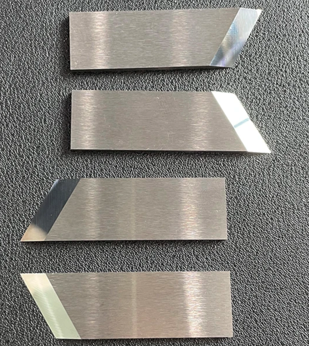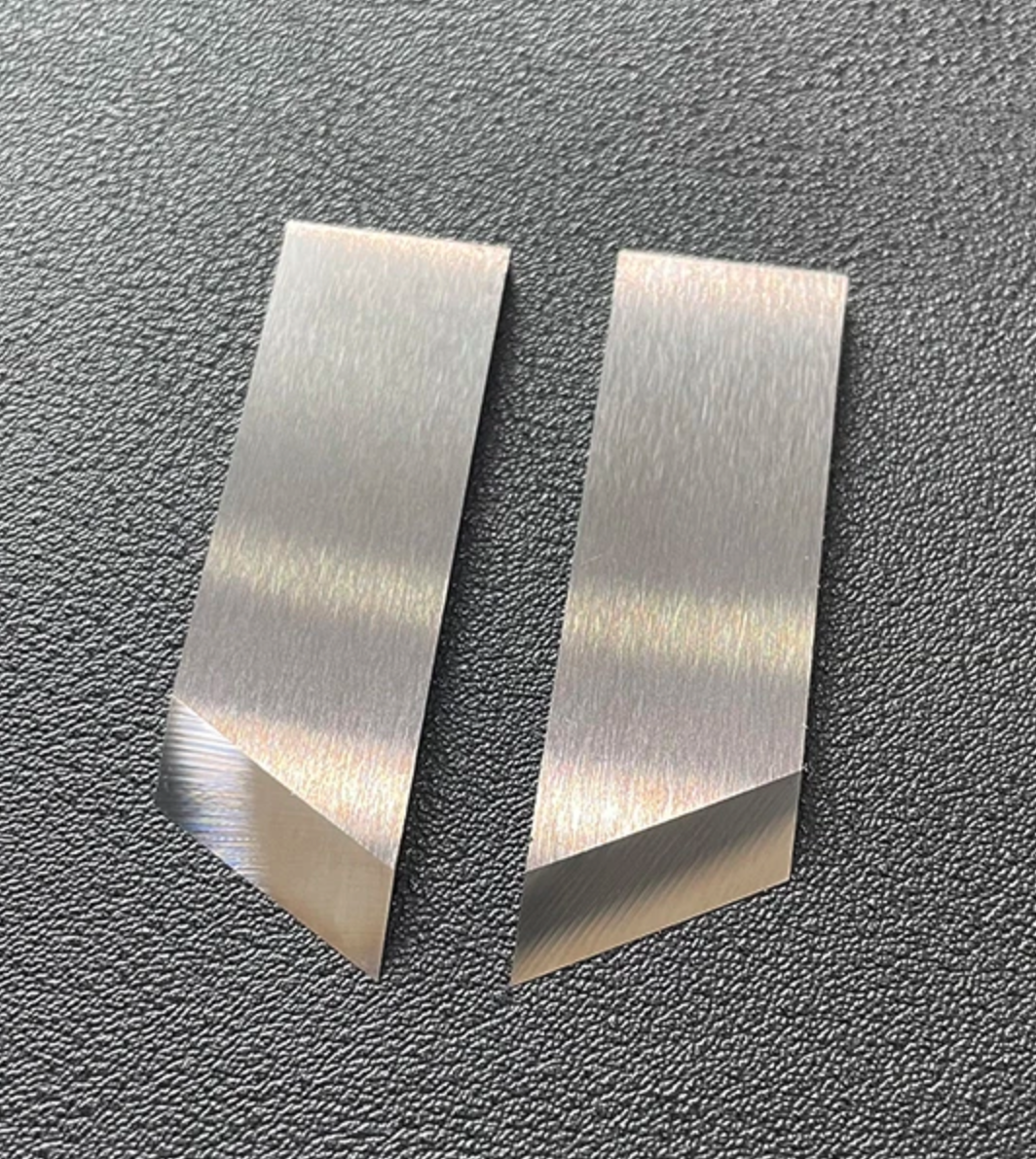 Ficha técnica: Un par de navajas de acero para una máquina ranuradora de MDF con corte tipo V se usa para crear ranuras en forma de V en tableros de MDF. Estas navajas están diseñadas para realizar cortes precisos y limpios, mejorando la calidad del acabado del material.