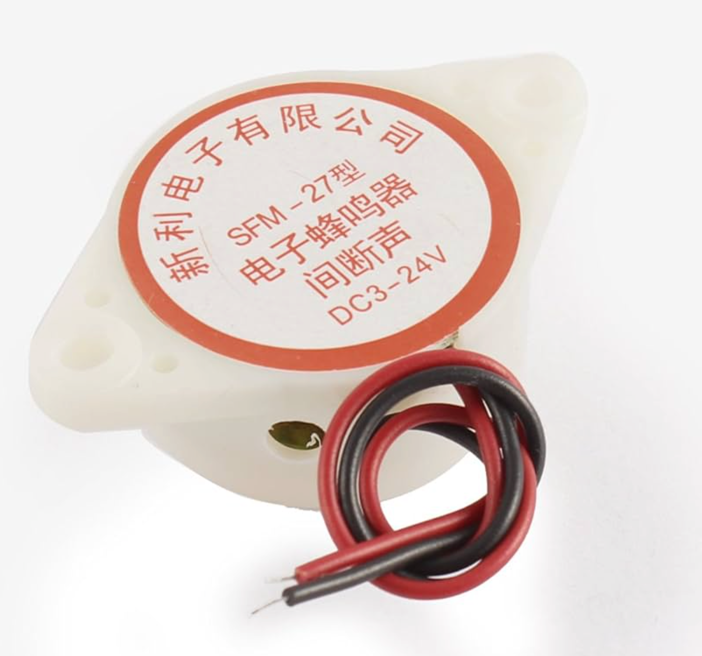 Ficha técnica: Buzzer SFM-27-1 (zumbador o avisador acústico) con señal de tono constante. Este dispositivo es ideal para alarmas y señalización acústica. A pesar de su bajo voltaje de operación (3-24V), proporciona una excelente señal acústica, y puede ser alimentado hasta con 24V.