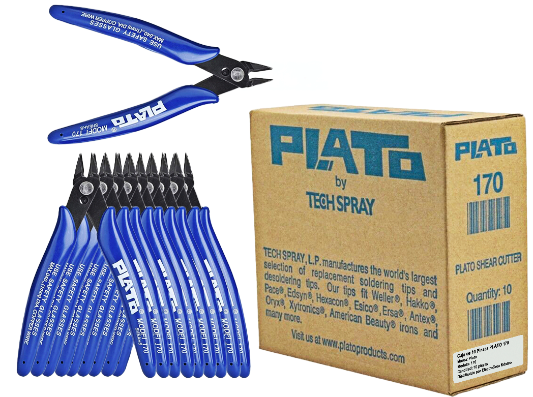 Ficha técnica: Pinzas de corte plato diseñadas para cortes precisos en alambres finos y componentes electrónicos.
