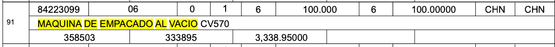 Ficha técnica: Maquina para empacar alimentos al vacío en bolsas de plástico.